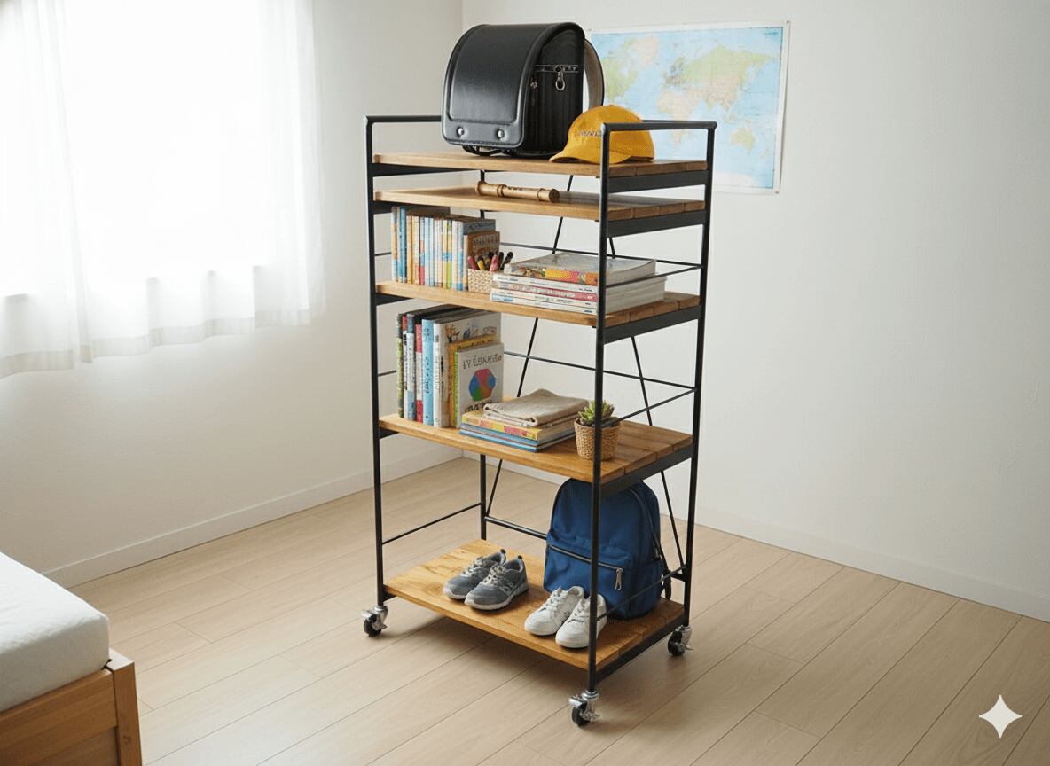 アイアン ウッド ランドセル ラック (キャスター付き可動式 オープンラック )《頑丈》《全面溶接》
