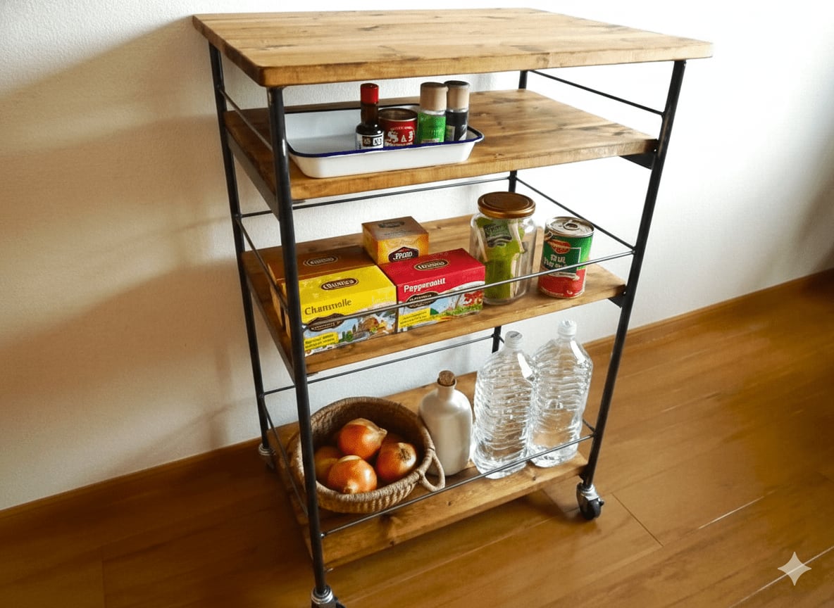 アイアン ウッド ワゴン ( キッチン ワゴン 作業台 コーヒー ラック レンジ台 )《頑丈》《全面溶接》